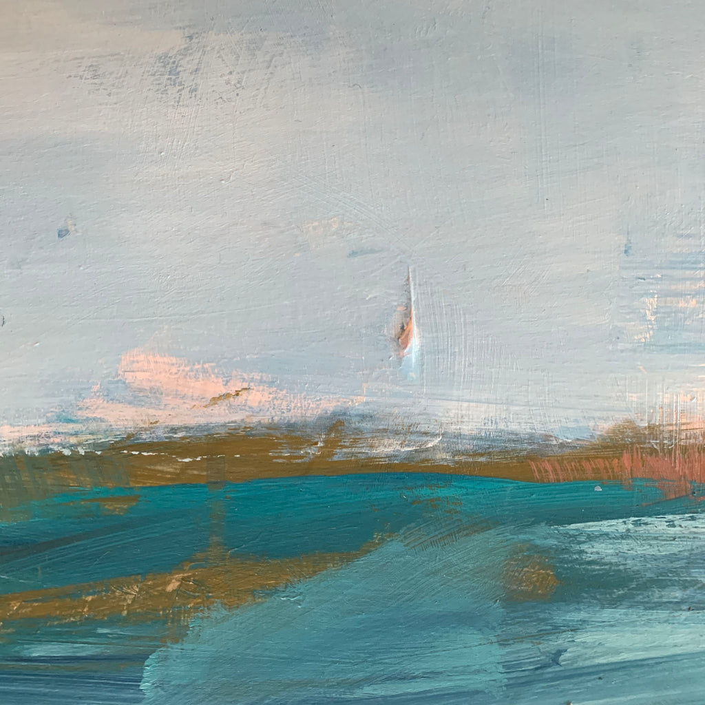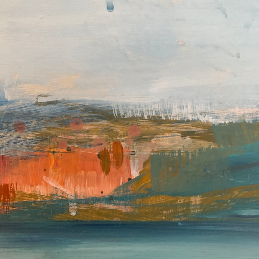 Original abstract painting of clouds in the mountains.