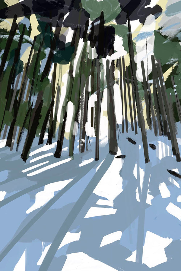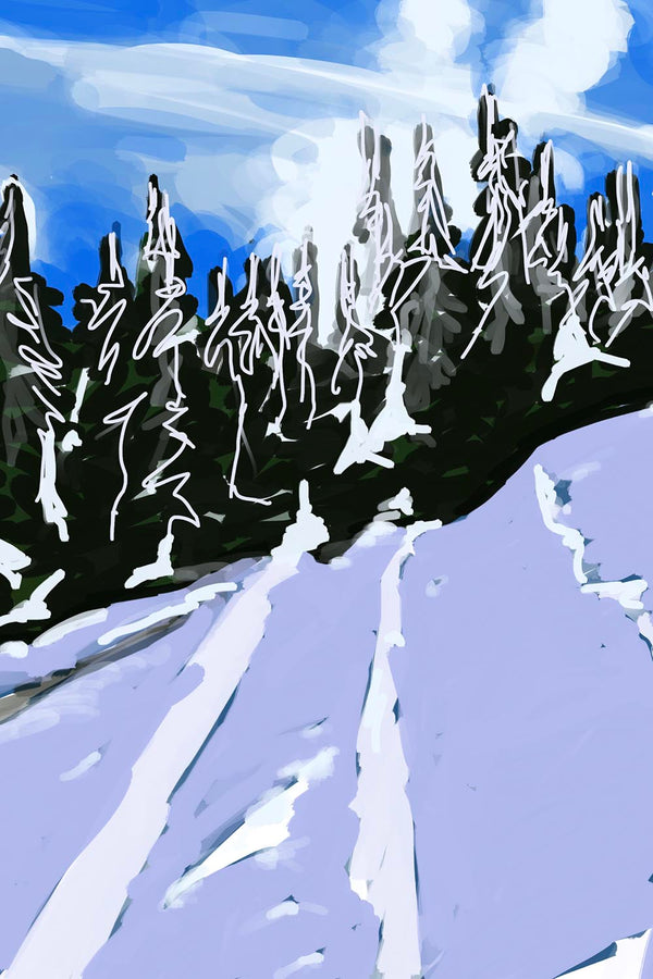 Artist Danny Touw is inspired by the winter mountain landscapes in the Swiss and French Alps. He creates contemporary prints by combining different media. His work includes original drawings in ink, acrylics on canvas, watercolours and ink on paper and fully digital paintings.