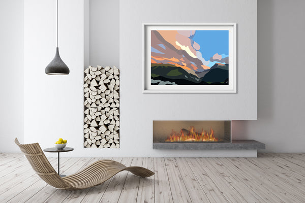 Danny's wall art mountain prints blend bold graphic design with timeless landscape inspiration, making them perfect for chalets, ski lodges, or any interior that embraces the spirit of the mountains.