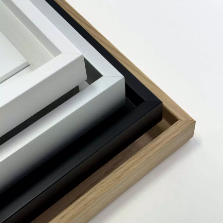 This frame is available in oak or in black, silver or white aluminium. You will automatically receive a black frame unless otherwise requested.