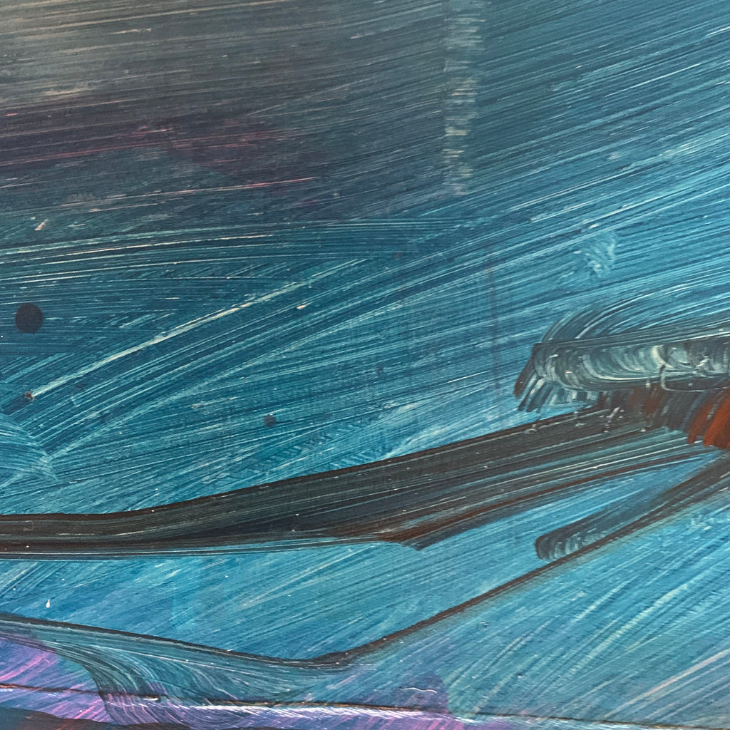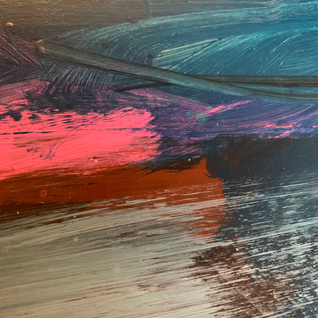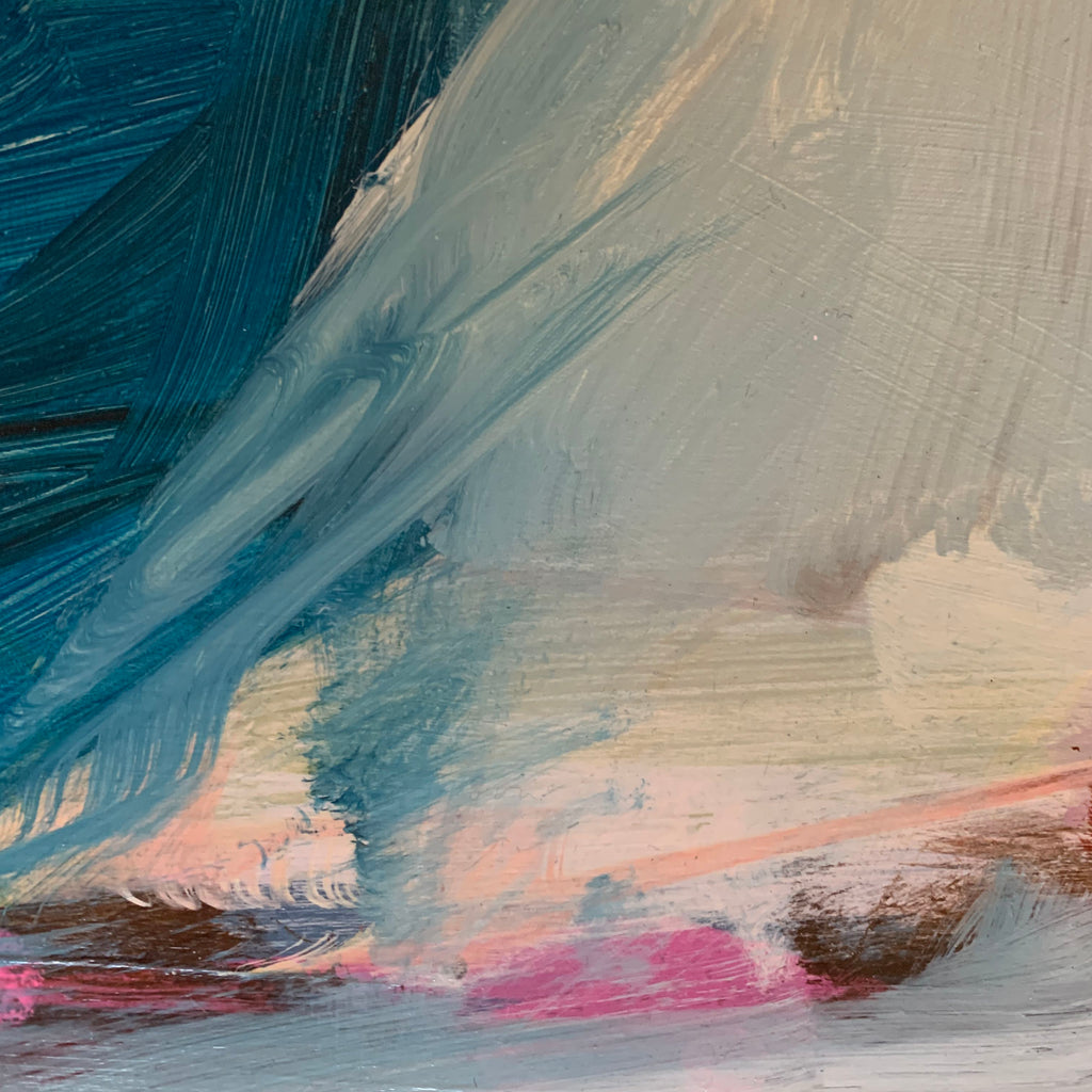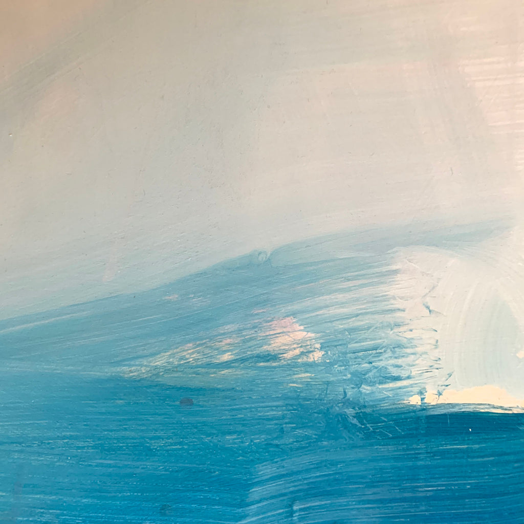 Original abstract painting of clouds in the mountains.
